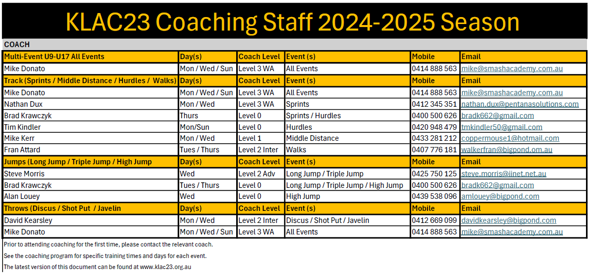 KLAC coaching contacts 2024-25 as of 29.9.24
